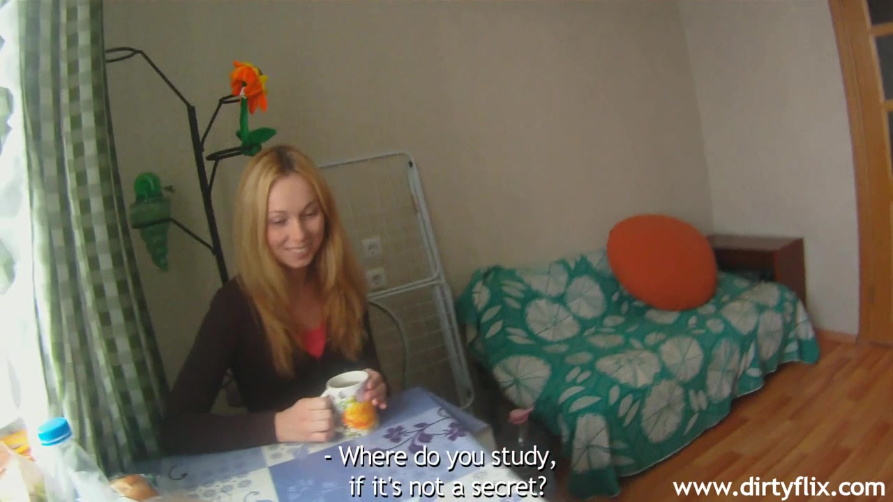 Чуваки с камерой поехали прокатиться по городу на машине и заодно снять себе сучку для траха. Подобрали молодую девушку и узнав, что она учится на врача, привезли к себе домой, чтобы она посмотрела здоровье парня. Сначала парень дал ей потрогать свой пульс. Затем вытащил член блондинке пришлось трогать его и отсасывать губами. Стала рачком и когда парень насладился ее дырочкой, подставила под сперму сиськи.